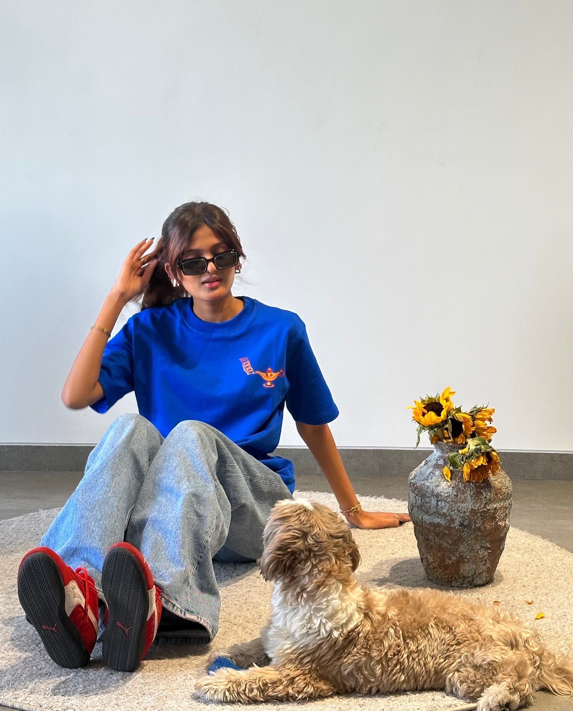 The Genie Tee looks great with any blue denim, no matter how light or dark. Pair it with bright or coloured sneakers for a standout fit. Pair it with a bandana to make it a vacation or concert fit.