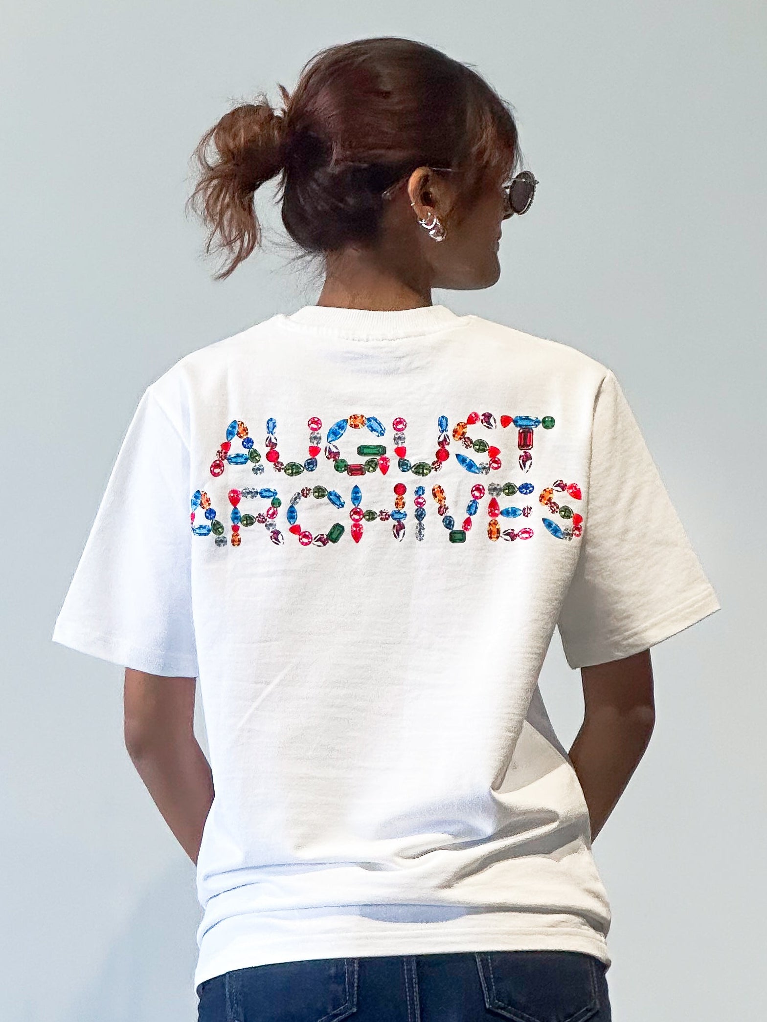 Meet the new go-to white tee, a true wardrobe essential with a twist. This ultra-versatile t-shirt features a vibrant, colourful rhinestone design that adds the perfect pop edge to a classic look.